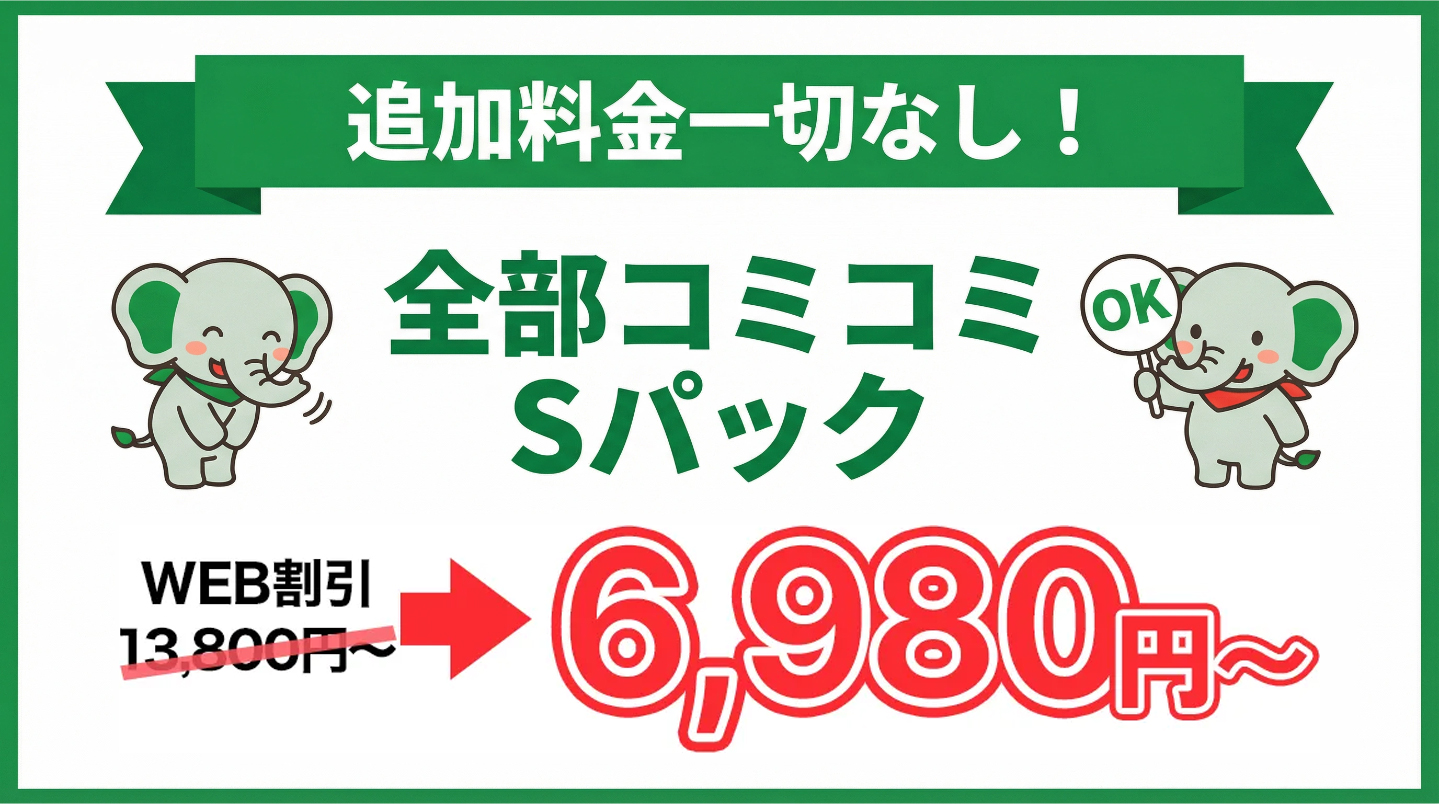 2DK程度のお部屋の片付けや、大掃除で出た大量の不要品の回収はこちら!オフィスや店舗の掃除にもオススメのパックです!