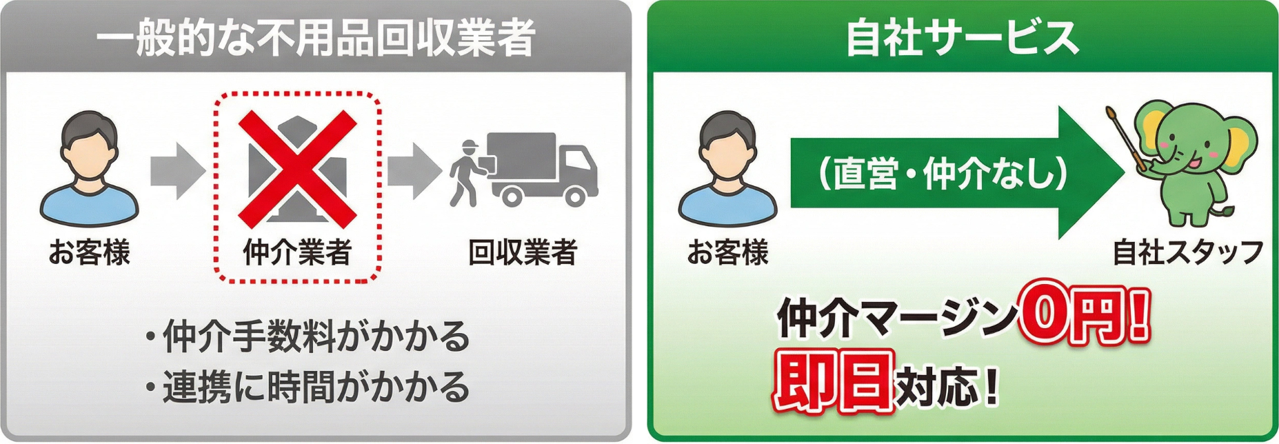 - 大量の粗大ゴミ・不用品でも即日回収させていただきます。お気軽にご相談ください。