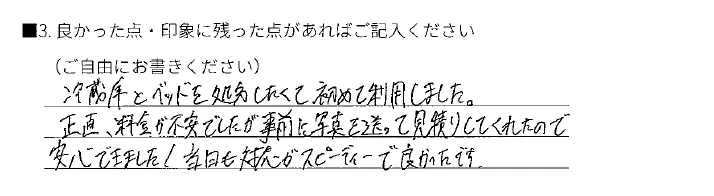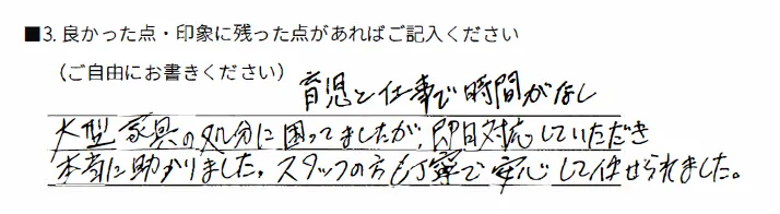 - 大きい家具を一つだけ回収したいんだけど、他社で断られました。。。
